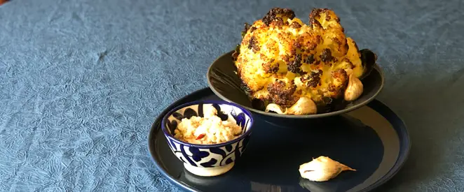 Chou Fleur Entier Roti Au Four Moutarde Orange Et Cumin